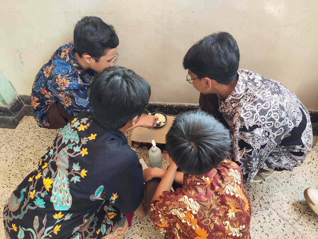 Saat itu kelompok saya membuat briket dari daun kering. Alasan kelompok saya membuat itu karena cara membuatnya lebih gampang.